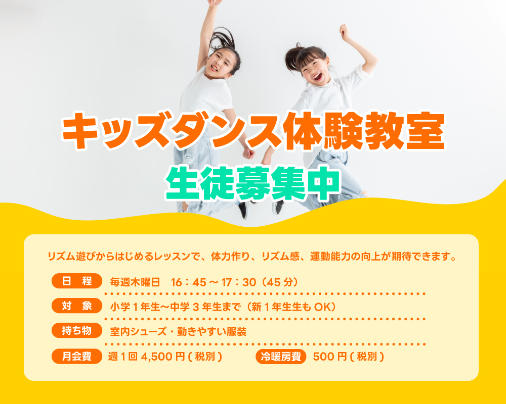 リズム遊びからはじめるレッスンで、体力づくり、運動能力の向上が期待できます